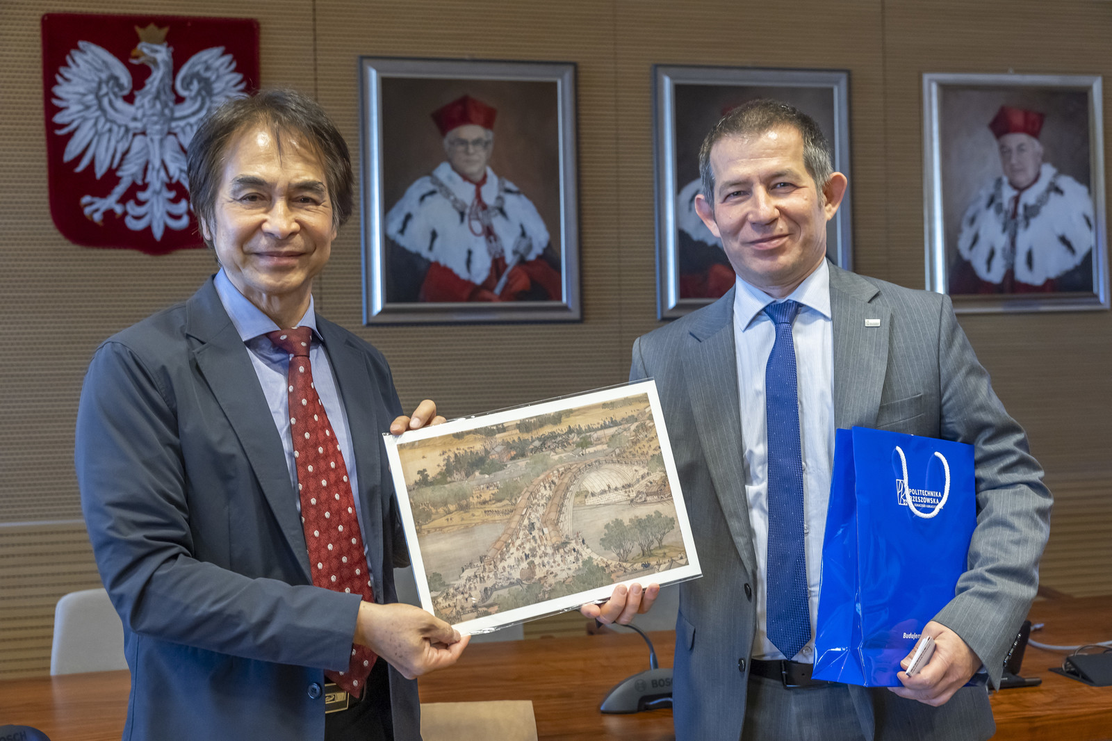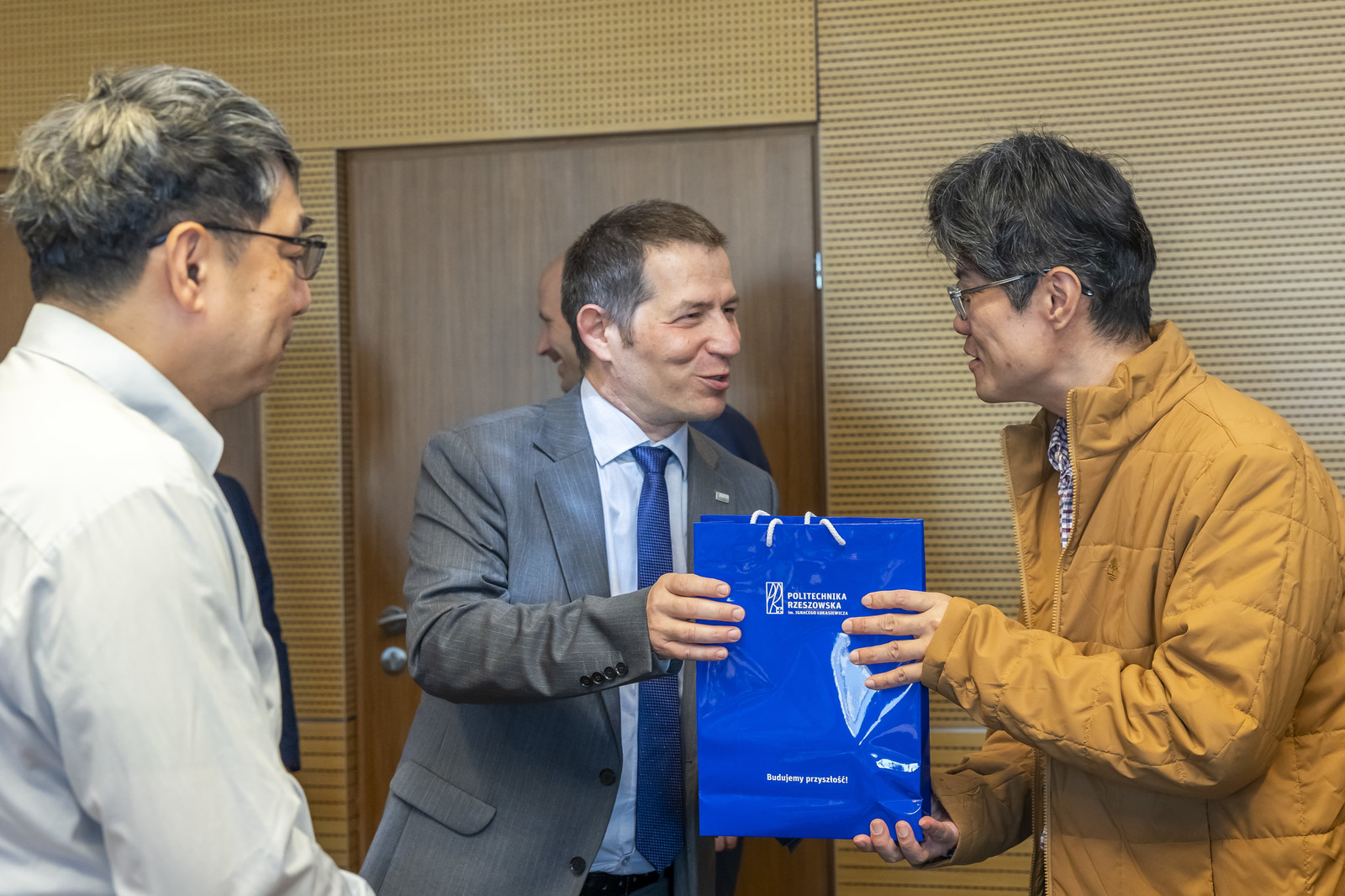 W Sali Senatu Politechniki Rzeszowskiej odbyło się spotkanie delegacji naukowo-przemysłowej z Tajwanu z przedstawicielami Politechniki Rzeszowskiej oraz firm lotniczych z Podkarpacia. Wydarzenie było okazją do wymiany doświadczeń i omówienia potencjalnych obszarów współpracy w dziedzinie zaawansowanych technologii lotniczych, systemów bezzałogowych oraz innowacyjnych rozwiązań dla przemysłu kosmicznego.