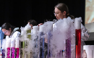 Uczestnicy Seminarium „Wybrane Problemy Chemii” wysłuchali inspirujących wykładów, zwiedzili laboratoria Wydziału Chemicznego i obejrzeli efektowny pokaz chemiczny.