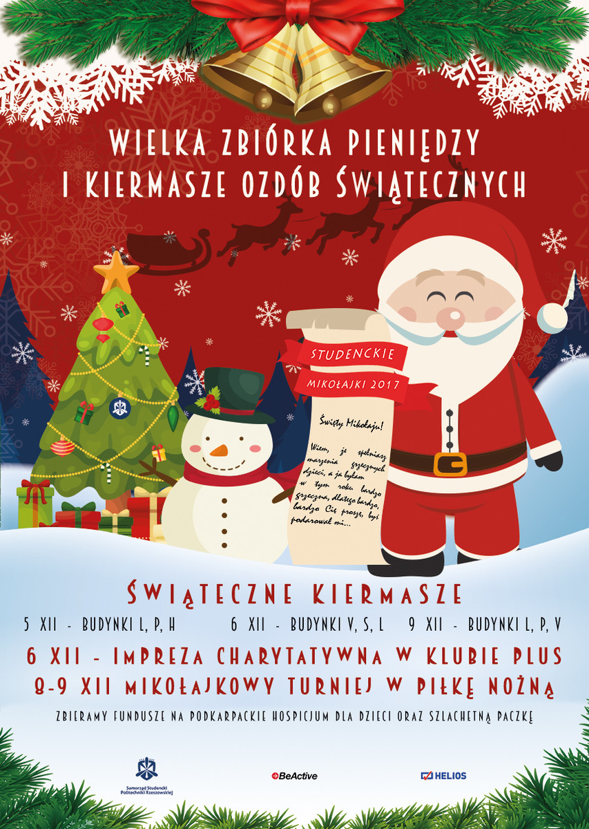 Zbliża się okres Bożego Narodzenia – piękny czas, który kojarzy się z pełnią ciepła mimo mroźnej zimy. Z tej okazji Samorząd Studencki Politechniki Rzeszowskiej już teraz mobilizuje swoje siły i organizuje akcję charytatywną „STUDENCKIE MIKOŁAJKI”, dzięki której będzie można weprzeć tegoroczny cel. To zakup prezentów dla dzieci z Podkarpackiego Hospicjum dla Dzieci oraz rodziny ze Szlachetnej Paczki. Możemy pomóc!