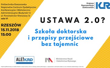 Serdecznie zapraszamy na spotkanie informacyjne w sprawie Ustawy 2.0, które odbędzie się 15 listopada 2018 r. o godz. 15:00 w auli V-1 Politechniki Rzeszowskiej.