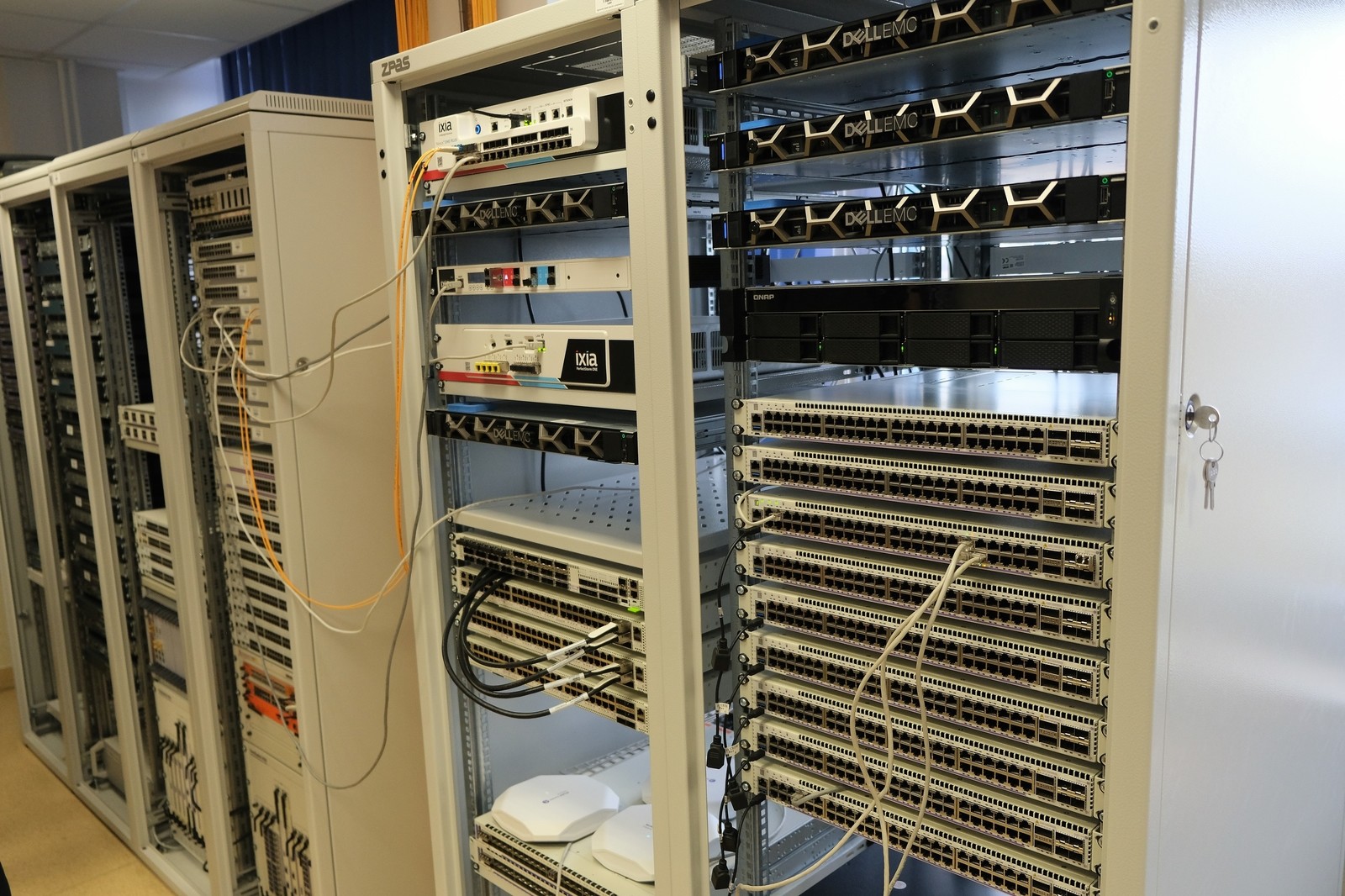 - zestaw czterech wysoko wydajnych przełączników rdzeniowych i dzewięciu przełączników agregacyjnych pozwalających na tworzenie topologii testowych wraz modułami komunikacji bezprzewodowej, systemem zarządzania i wsparciem dla urządzeń klasy IoE,